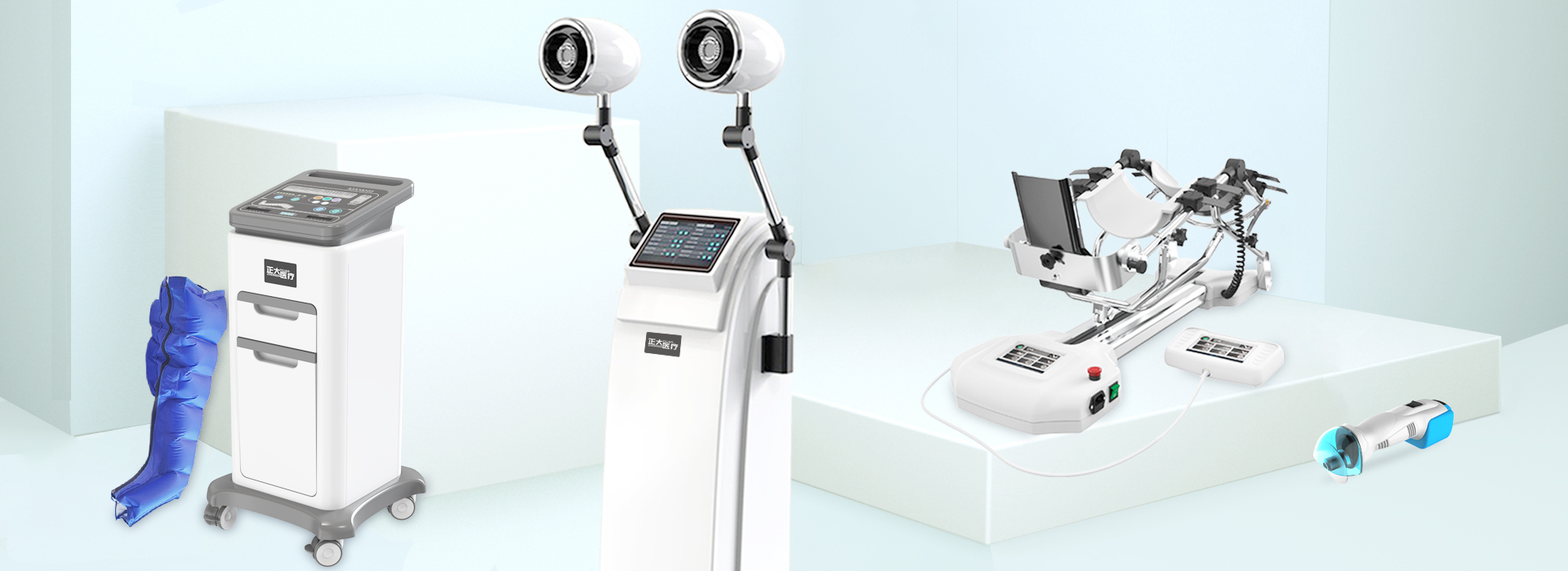 下肢關節康復器,關節持續被動活動儀,空氣壓力波治療儀,智能多功能按摩儀,中頻電療儀,頸腰椎牽引裝置,氣壓彈道式體外壓力波治療儀,冷空氣治療儀,熏蒸治療儀